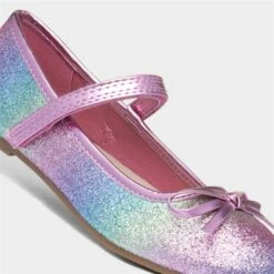 By Buckle My Shoe, these Fifi girls’ ballerinas feature a glittery multicoloured rainbow upper with a pink trim and bow detailing. Their easy fasten strap provides a quick and easy fitting and their insole provides comfort. Their outsole is gripped for stability. These ballerinas are an essential to any party!