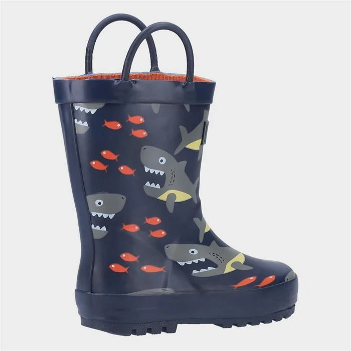 By Cotswold, this kids welly in navy features a fun shark print. These wellies are perfect for playing outside, even when the weather isn’t great. A rubber upper and sole keep your children’s feet dry, and the handles at the top make it easy for them to put on and also for you to carry around.