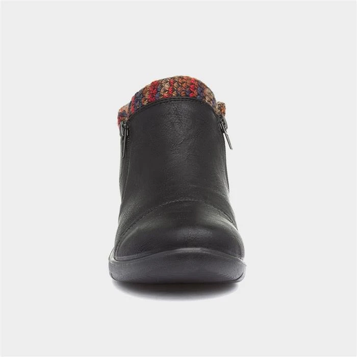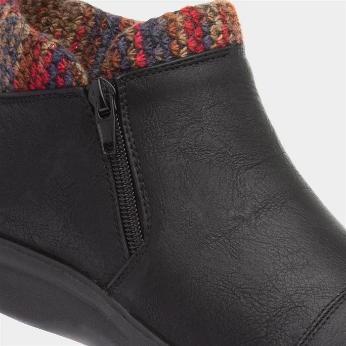 Designed by Cushion Walk, these women’s boots embrace a black upper with a multi coloured knitted collar. They feature two side zip fastening for a secure fit, while their padded insole ensures comfort beneath your feet.