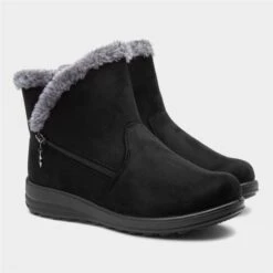 Keep warm this winter with these Olivia women’s boots from Cushion Walk. They feature a black faux-suede upper with stitch detailing, and a faux-fur trim. They’re easy to slip on, and their side helps with fitting, while their soft, faux-fur lining and insole ensures maximum comfort, and warmth. Additionally, their low wedged heel is gripped for stability. Essential for the colder weather.