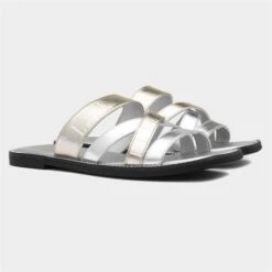 From Elle, the Oceania women’s sandals. They have a silver strappy upper with ELLE printed across the straps. They’re easy to slip on, and they have gripped outsole for stability.