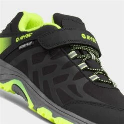 From Hi-Tec, these Yomp kids black and lime green shoes are the perfect pair for your little explorers this season! Their lightweight, softshell upper offers an extremely comfortable fit and greater durability, while a Dri-Tec waterproof membrane ensures dry feet. They feature an elasticated lace, and an easy fasten strap, for a custom, comfy fit. These shoes are great for going on walks or mini hikes!