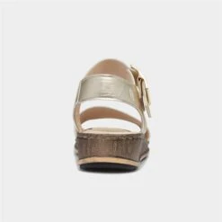 From Hush Puppies, these Ellie women’s sandals feature a metallic gold leather upper with a crinkled and shimmer effect, a chunky buckle fastening for a secure fit, and a padded insole for comfort. For added comfort, they feature Hush Puppies’ ZeroG Super-Lightweight technology, and a foam-feel wedged heel, which is gripped for stability.