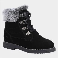 By Hush Puppies, these Mini Florence girls boots in black. This Hush Puppies womens best seller – now available in mini-me’s! The Mini Florence made from Worry Free Water Resistant suede features a super soft faux fur collar, cosy fleece lining and adjustable lace fastening and inside zip for the perfect fit.