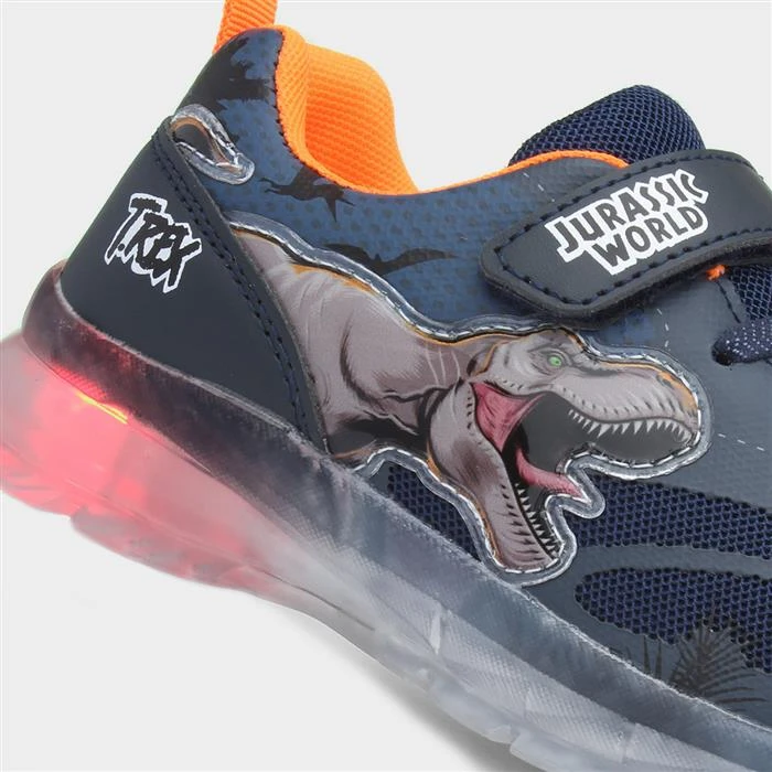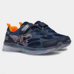 These kids’ Jurassic World trainers feature a navy upper with a T-Rex appearing on the side. They’re easy to fit with an easy fasten strap and elasticated laces, and their insole offers comfort. Additionally, their clear outsole not only lights up when they walk but ensures stability when they’re running around the dinosaurs!