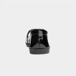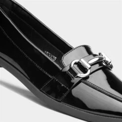 From Lilley, the Anna women’s loafer in black. It features a shiny patent upper with a silver snaffle bar and faint stitch detailing. They’re easy to slip on and they feature a low heel for added height. Additionally, their heel and outsole are gripped for stability. These Anna loafers are a staple for a smart look at work or school.