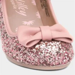 From Lilley Sparkle, these girls’ party shoes embrace a pink glitter upper with a bow on a heeled outsole. They feature an easy fasten strap for easy fitting, while their padded insole provides comfort underfoot.