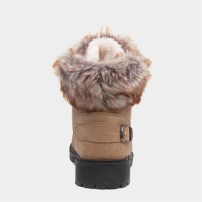 By Lilley, these gorgeous snug boots will keep your feet warm coming up to autumn/winter. Their cosy faux fur trim complements the tan upper and the lace up fastening. There is a chunky low sole adding comfort to your day with a buckle decoration on the side. Additionally, they feature a contrasting black grip sole for that finishing touch.