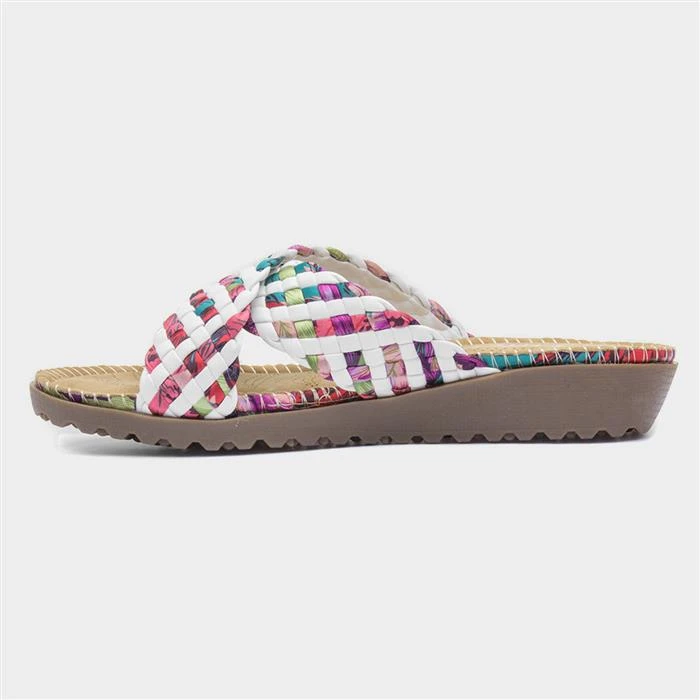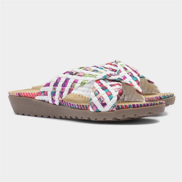 Lilley Womens White Plait Mule Sandal