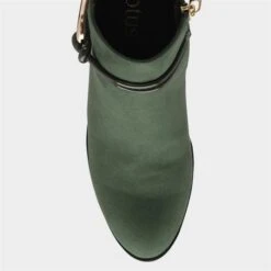 Designed by Lotus, the Autumn women’s boots in green feature a textile upper with a contrasting black panel around the ankle. They have delicate strap detailing that interlinks with metal hardware and a mirrored plate and trim on the 6.5cm block heel. These green boots are a staple silhouette but with undeniable allure!