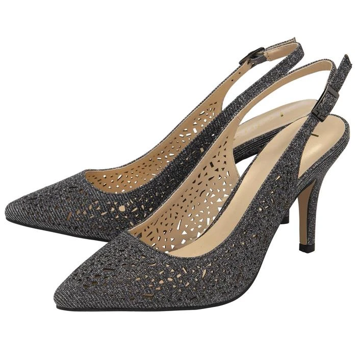 Designed by Lotus, the Lyla women’s shoes in pewter grey feature a unique finish with their intricate laser cut out detailing that is encompassed on the glittery upper. Their slender 8.5cm stiletto heel adds height, while their adjustable slingback buckle strap offers a secure fit, making these soft pointed shoes a delight to wear. Match these heels with the Esmee clutch bag for a co-ordinated look.