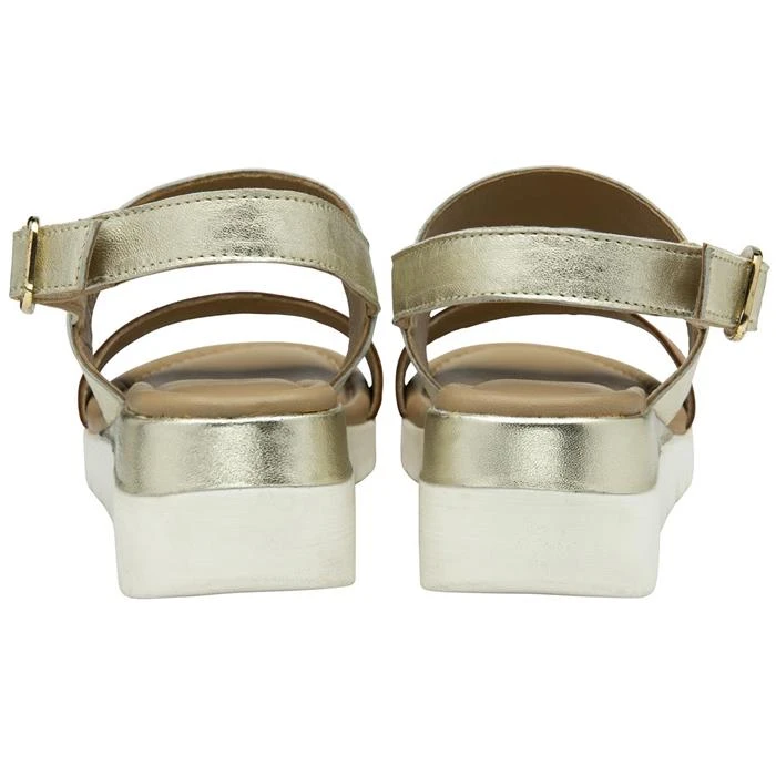 These Madelyn women’s sandals in tan by Lotus are crafted from leather and feature a metallic strap on the upper. their adjustable slingback fastening ensures a secure fit, while its contrasting white 5cm wedge heel adds height and their open toe allows your feet to breathe. These shoes are a great addition to your summer wardrobe and perfect for daytime glam.