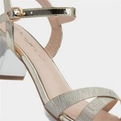 From Lunar, the Republic heel in gold with subtle glitter detailing, a dainty buckle strap, and slingback too. Their padded insole offers comfort and support to the heel and sole, while their matching block heel adds height, stability, and lightweight feel. A must-have for any party look this season.