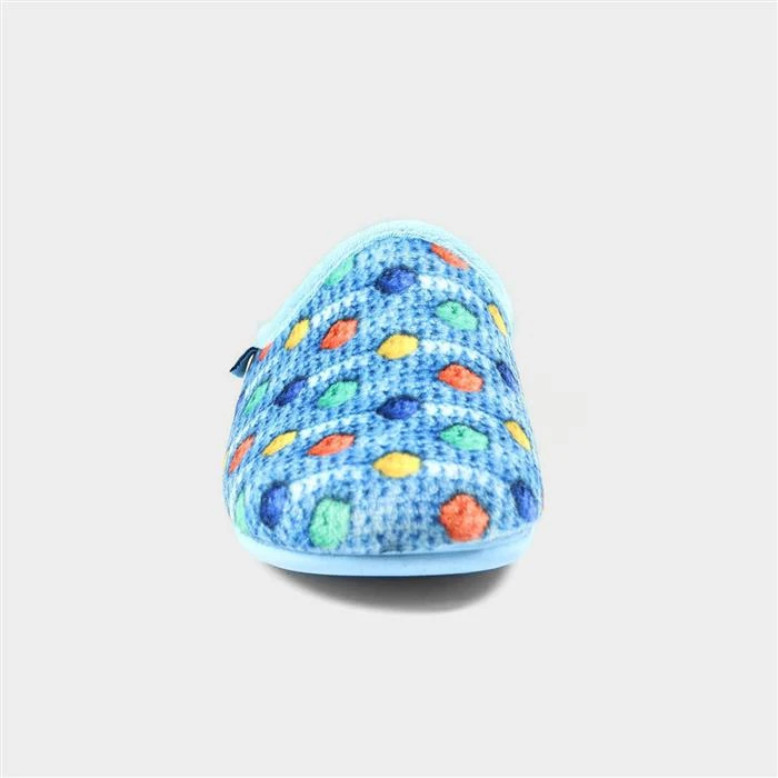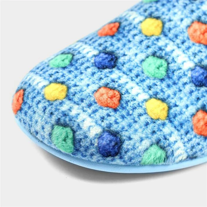 By Lunar, Winova womens slippers in blue. The Winova is a super soft mule slipper. The playful, 3D print gives the illusion of 3D pompoms and the super soft lining makes these slippers a dream to wear. The exposed heel makes them easy to slip on and off. If you’re looking for a comfort then why not give these a whirl.