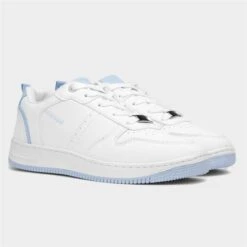 From Osaga, the Tammy women’s trainer. It features a white upper with light blue detailing. Their lace-up fastening ensures a secure fit, while their cushioned insole offers comfort. Their gripped outsole ensures a stable grip, alongside stability.