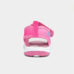 From Peppa Pig, these kids sandals feature a pink upper with Peppa Pig and other characters appearing on their sides. Their easy fasten strap allows for a quick and secure fit, while their open toe makes them ideal for warmer days. A must-have for your little one!