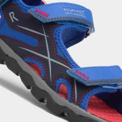 The kids’ Kota Drift Active Sandal from Regatta feature a blue spandex upper with triple easy fastening for a good, comfortable grip. Their treaded outsole ensures stability while they’re out and about this Summer.
