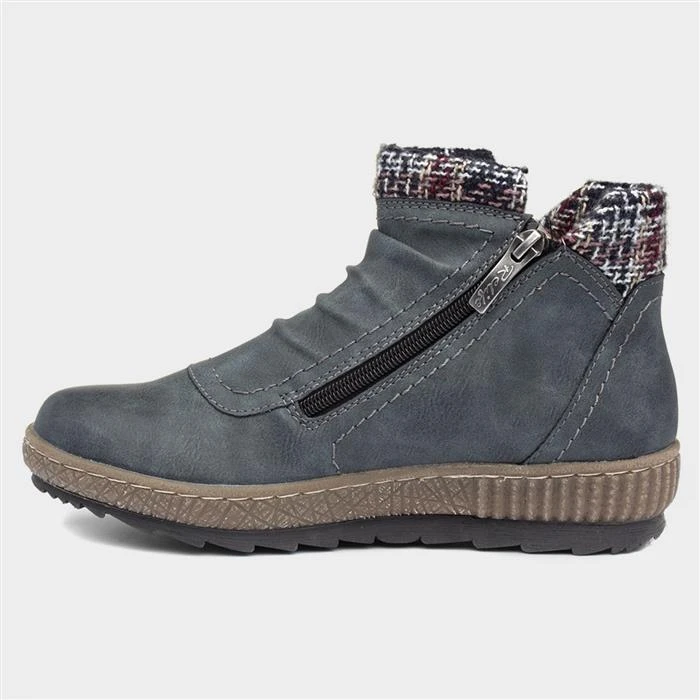 These women’s ankle boots from Relife are as cosy as they are stylish. Their unique cushioning provides relief and relaxation for your spine whilst massage elements stimulate the reflex zone in your heels. Created with warmth in mind, these boots showcase a fleece lining and insole, perfect for those frosty days! They embrace a smooth grey upper, along with fine stitch detailing and a multi-toned knitted collar for the finishing touch. Their double zip up design means they’re ideal for both quick and easy fitting.