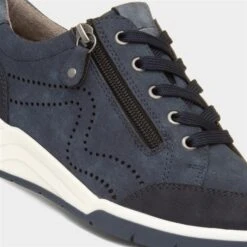 By Relife, these women’s casual shoes embrace a navy upper with stitched detailing on a wedged outsole. They feature both a lace up fastening and a side zip for easy fitting, while their padded insole and gripped outsole provides comfort underfoot.