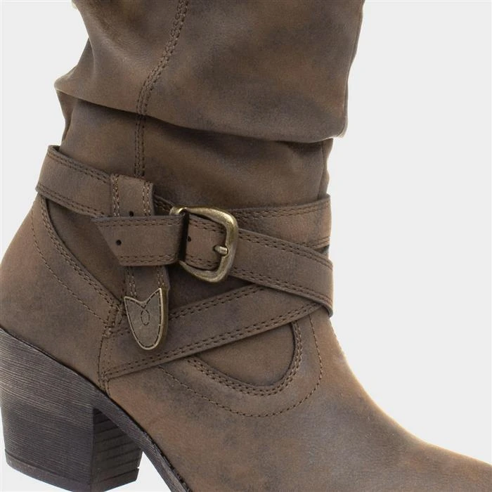 Designed by Rocket Dog, these Sidestep women’s cowboy boots feature a brown upper, a decorative buckle and can be easily pulled on and off thanks to the pull tab on either side as part of their design. Their block heel offers height whilst also ensuring a comfortable and stable fit. Look stylish this autumn/winter with these boots, which would look great pair with a dress, skirt or jeans!