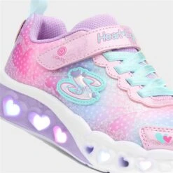 From Skechers, Flutter Heart Light Simply Love kids’ trainer. It features a pink and purple gradient upper with star, heart and glitter detailing. Their easy fastening strap and ribbon style laces ensure a quick and secure fit, while their heart shaped outsole lights up when they walk and provides flexibilty and stable.