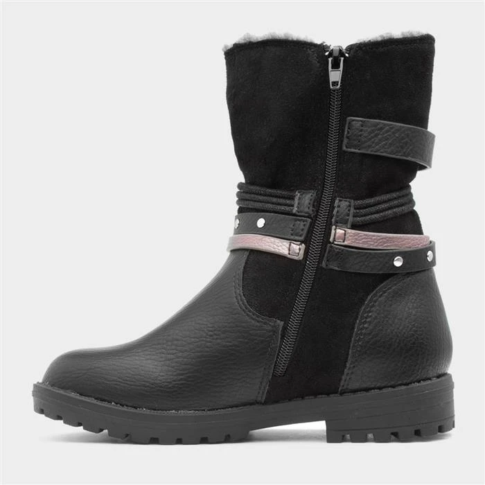 From Sprox, these girl’s boots feature a black stretch “easy fit” upper with buckle and tassel detailing, and a zip up fastening for a quick and easy fit. Their soft lining and insole keeps them warm, while a cleated outsole keeps them stable.
