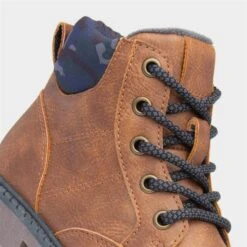 The Larry kids’ boot by Stone Creek Junior features a tan upper with a camo padded collar. They’re easy to fit with a pull tab, lace up fastening and zip up fastening, and a cleated outsole keeps them steady on their feet.