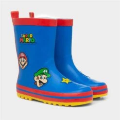 From Super Mario, these kids’ wellington boots embrace a blue upper with their favourite characters Mario and Luigi. These wellington boots are perfect playing outside on a wet day, with a simple slip on design and a gripped outsole.