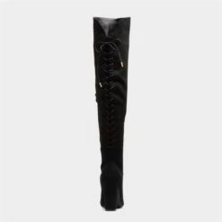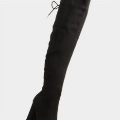 From Truffle, these over the knee women’s boots feature a black microfibre upper with stitch detailing. A black lace-up fastening offers a customised fit, and the additional zip helps with fitting. Their padded insole ensures comfort, while their matching heel adds height. These are perfect for a glam night out this season.