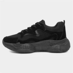 Designed by Truffle, these women’s trainers are a perfect choice for weekends, festivals and casual wear. They embrace a mesh and velvet black upper, finished with fine stitch detailing. These trainers also showcase a chunky, bubble gripped sole, as well as a spacious round toe front ensuring style as well as comfort. Their lace up fastening and pull tab to the counter keep your feet secure and are ideal for quick and easy fitting.
