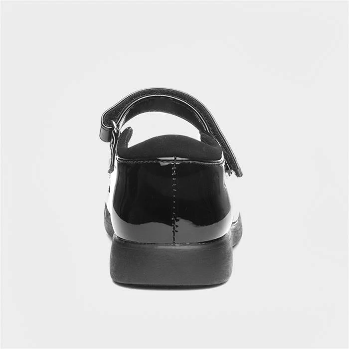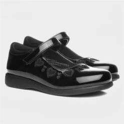 By Walkright, these girls’ school shoes embrace a black patent upper with stitched hearts. They feature an easy fasten bar strap for a secure fit, while their padded collar and insole ensures comfort beneath their feet.